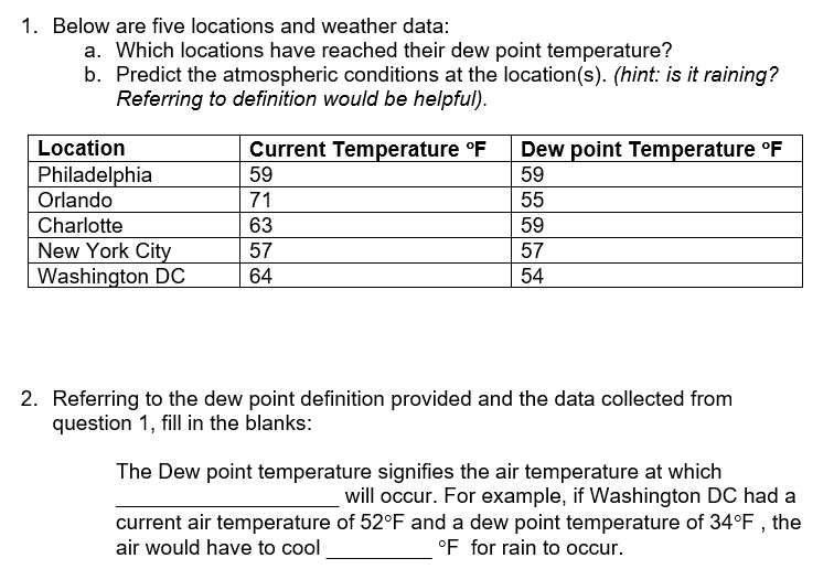 Solved 1. Below are five locations and weather data: a. | Chegg.com